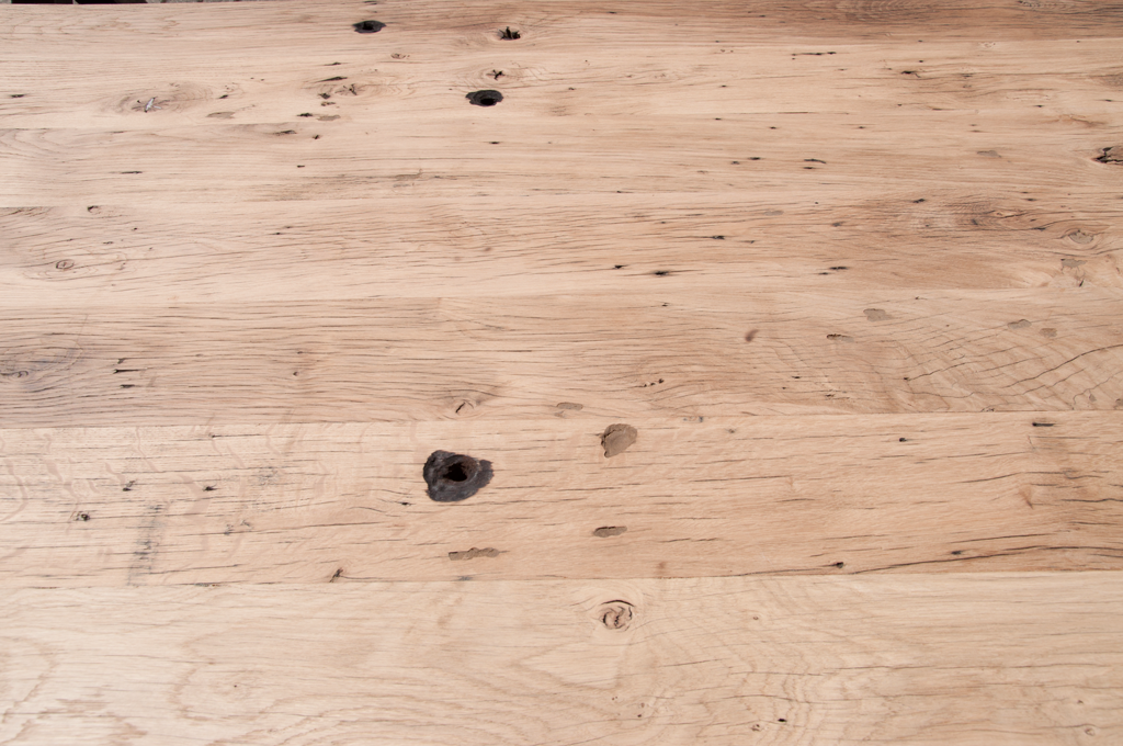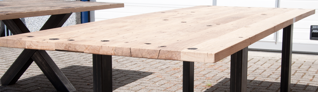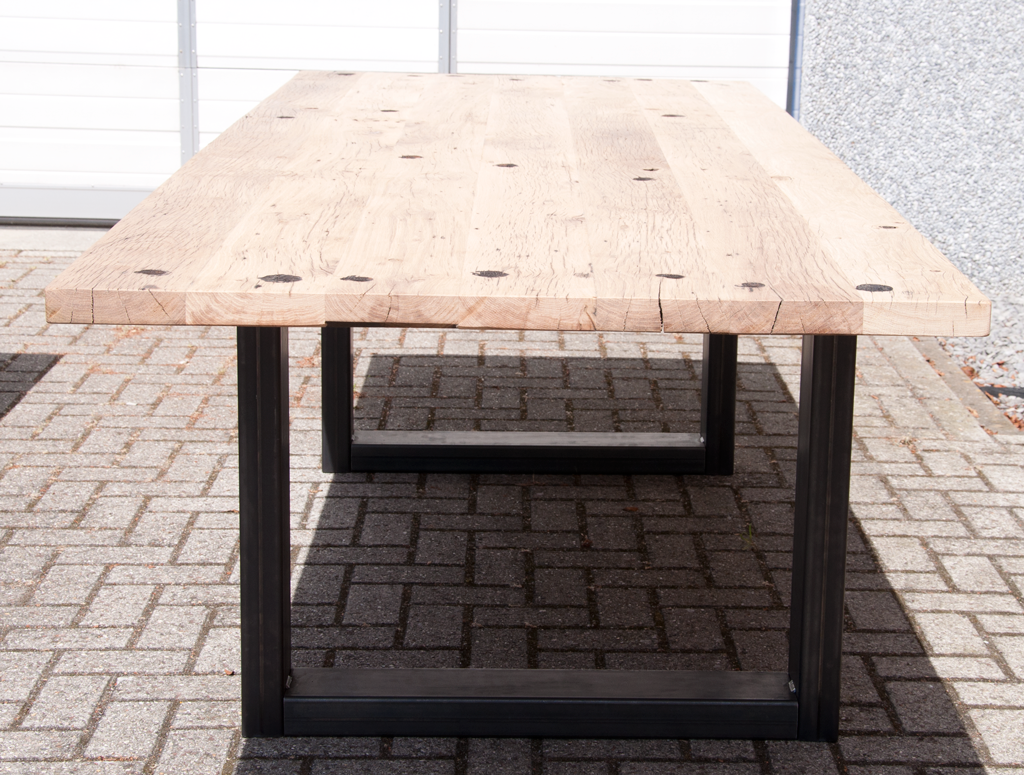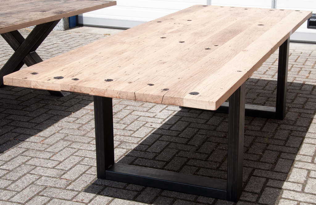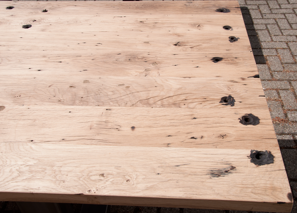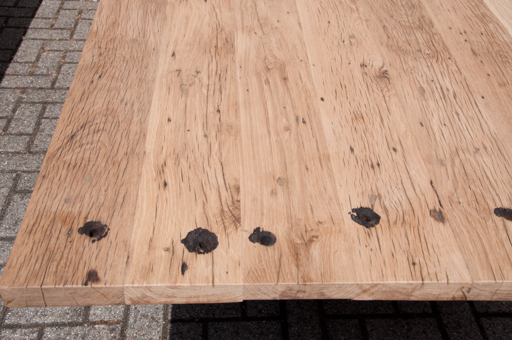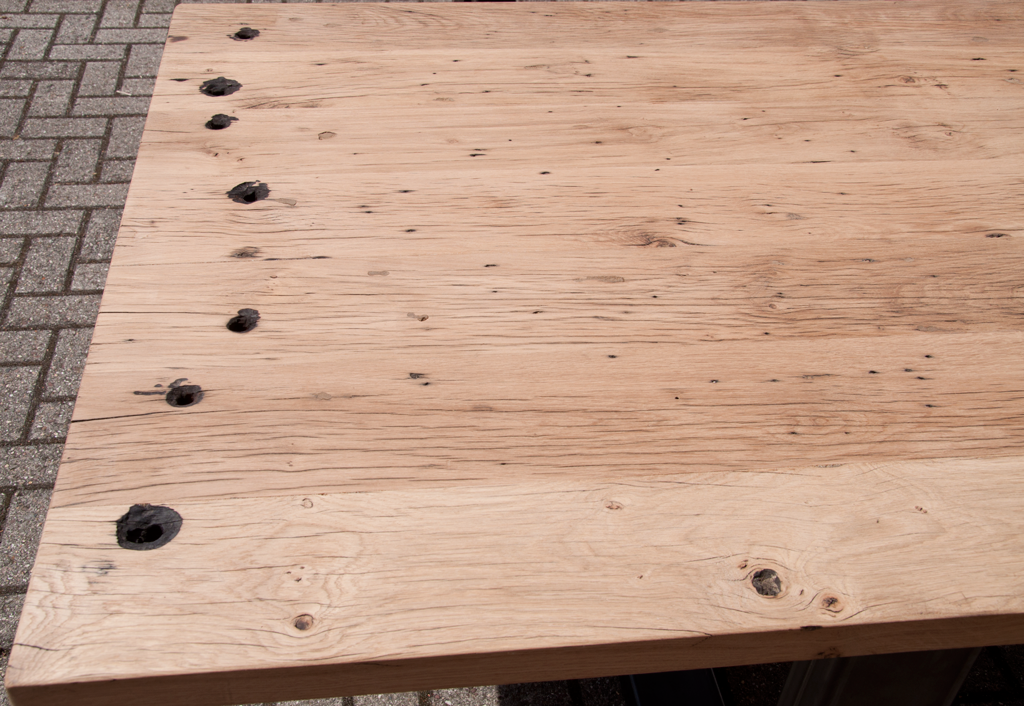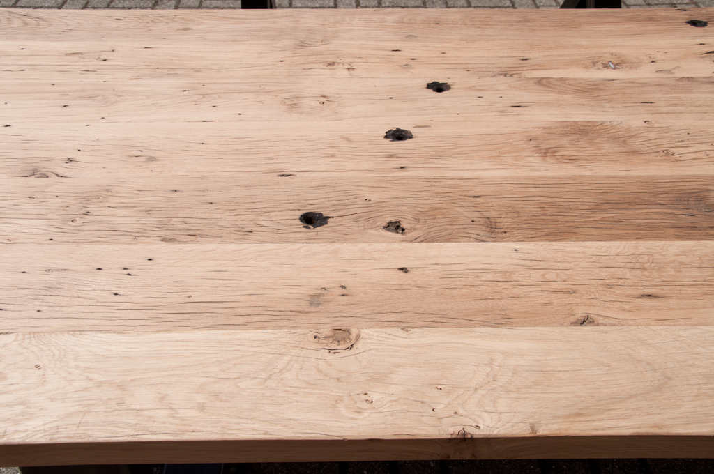 1605-02 Tafelblad van eiken wagonplanken 270x100x4, geschaafd en geschuurd