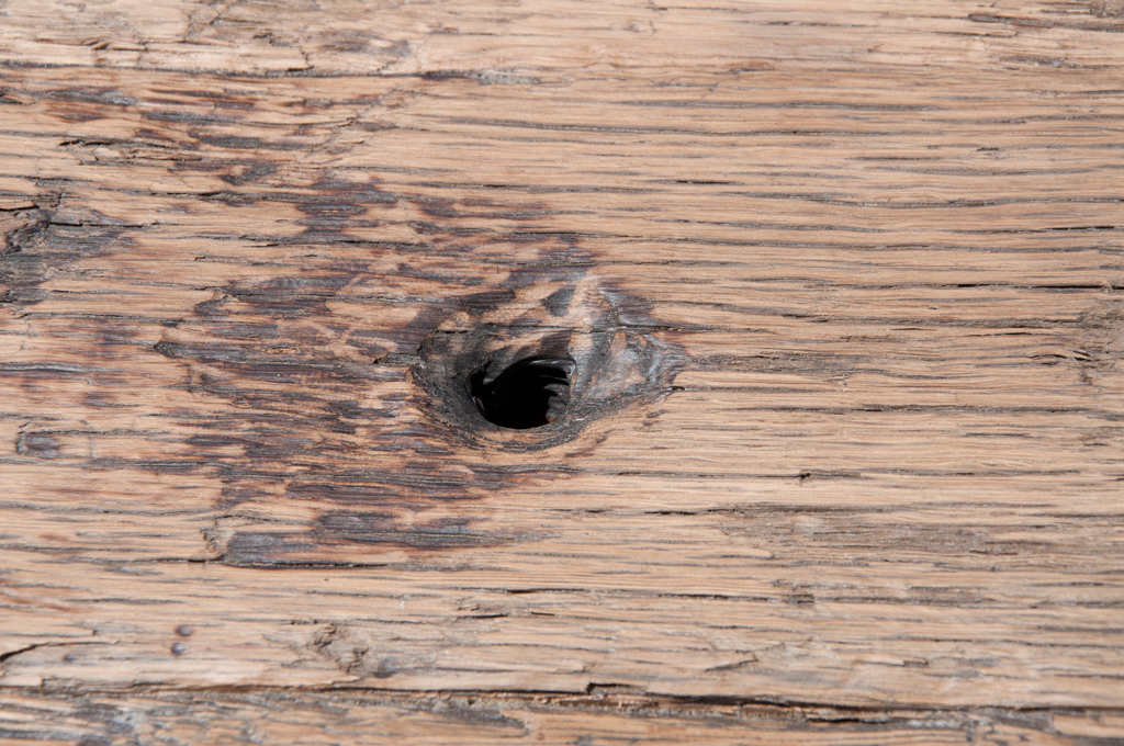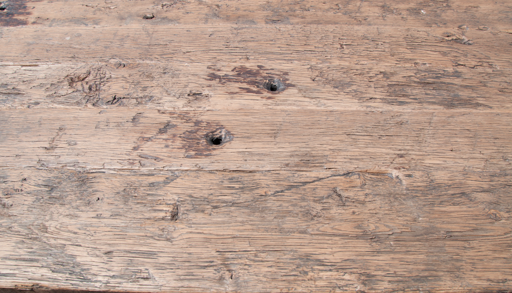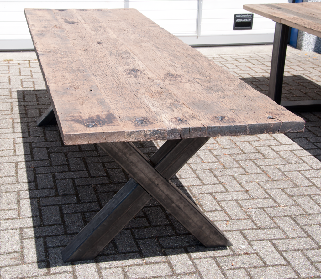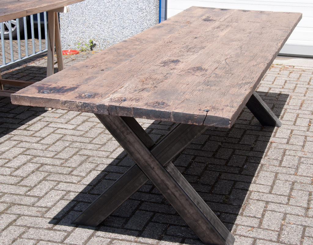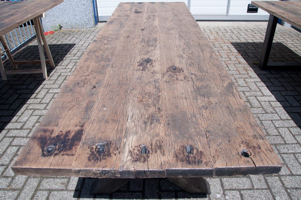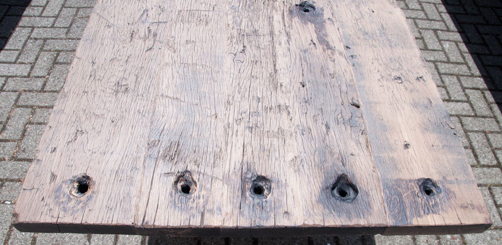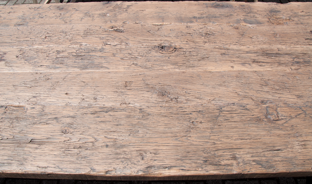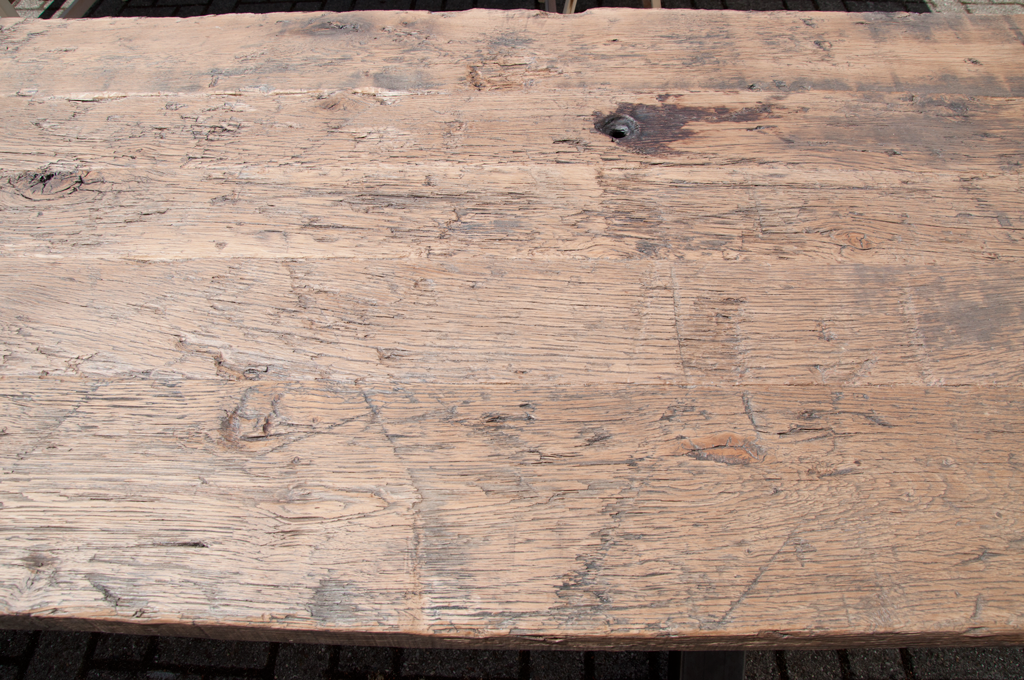 1606-02 Tafelblad van eiken wagonplanken, 280 x 90, geborsteld, Skylt behandeld