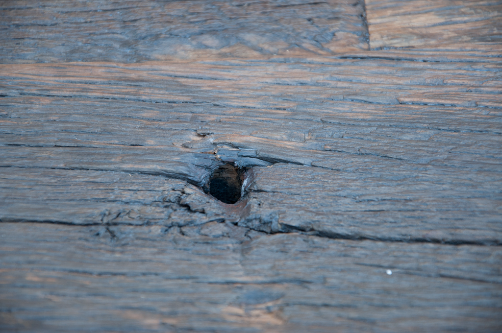 Je kunt op de foto’s goed zien dat het blad gemaakt is van oude planken. Het zit vol met gebruikssporen. Het blad kan niet praten maar het hout toont zijn eigen verhaal en je kunt er heel goed een geschiedenis bij fantaseren.